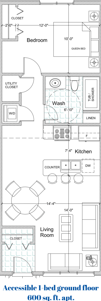 Accessible 1-bedroom ground floor 600 sq. ft. apartment